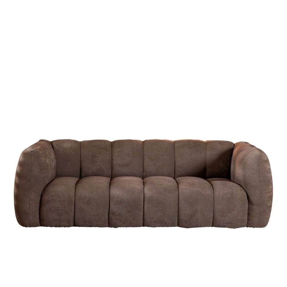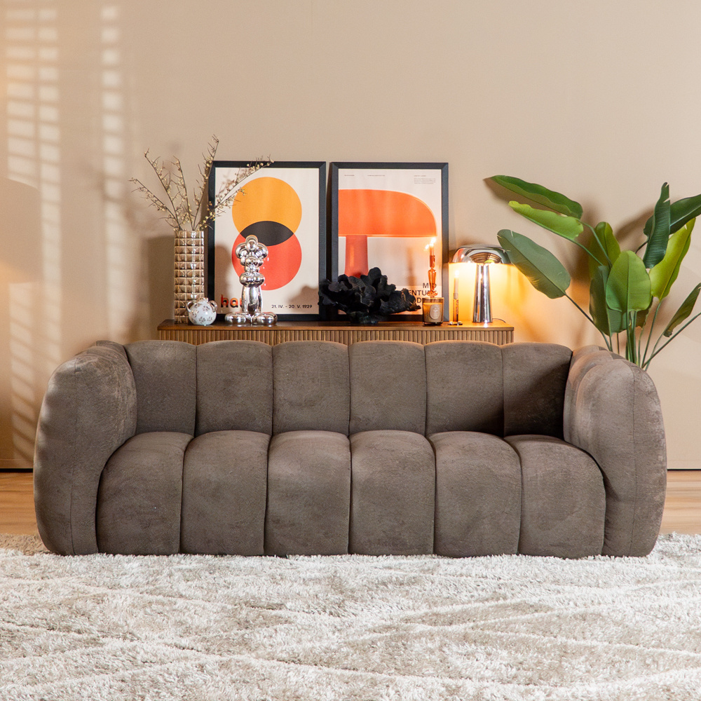 Hinweis: Das Sofa ist bodentief bezogen, was die luxuriöse Optik unterstreicht. Die Nähte des Bezugs sind leicht spürbar und betonen den authentischen, handwerklichen Charakter. Der Stoff weist von Natur aus einen leichten Pilling-Effekt auf. Dies ist materialbedingt und Teil der charakteristischen Optik des Sofas.
