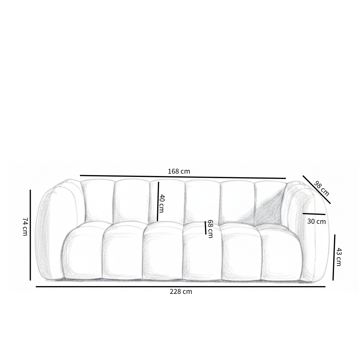 Das Sofa Luca bietet optimalen Sitzkomfort dank einer durchdachten Konstruktion aus hochwertigen Materialien. Das Innenleben besteht aus einem stabilen Rahmen aus Spanplatte und Holzlatten, kombiniert mit elastischen Gurten und Nosag-Federn. Diese sorgen für langanhaltende Unterstützung und Elastizität. Die Sitzflächen sind mit verschiedenen Arten von HR-Kaltschaum gefüllt, sodass das Sofa seine Form behält und auch bei täglicher Nutzung komfortabel bleibt. Der Sitzkomfort ist fest, aber angenehm – ideal für kurze Sitzmomente ebenso wie für lange, entspannte Abende.