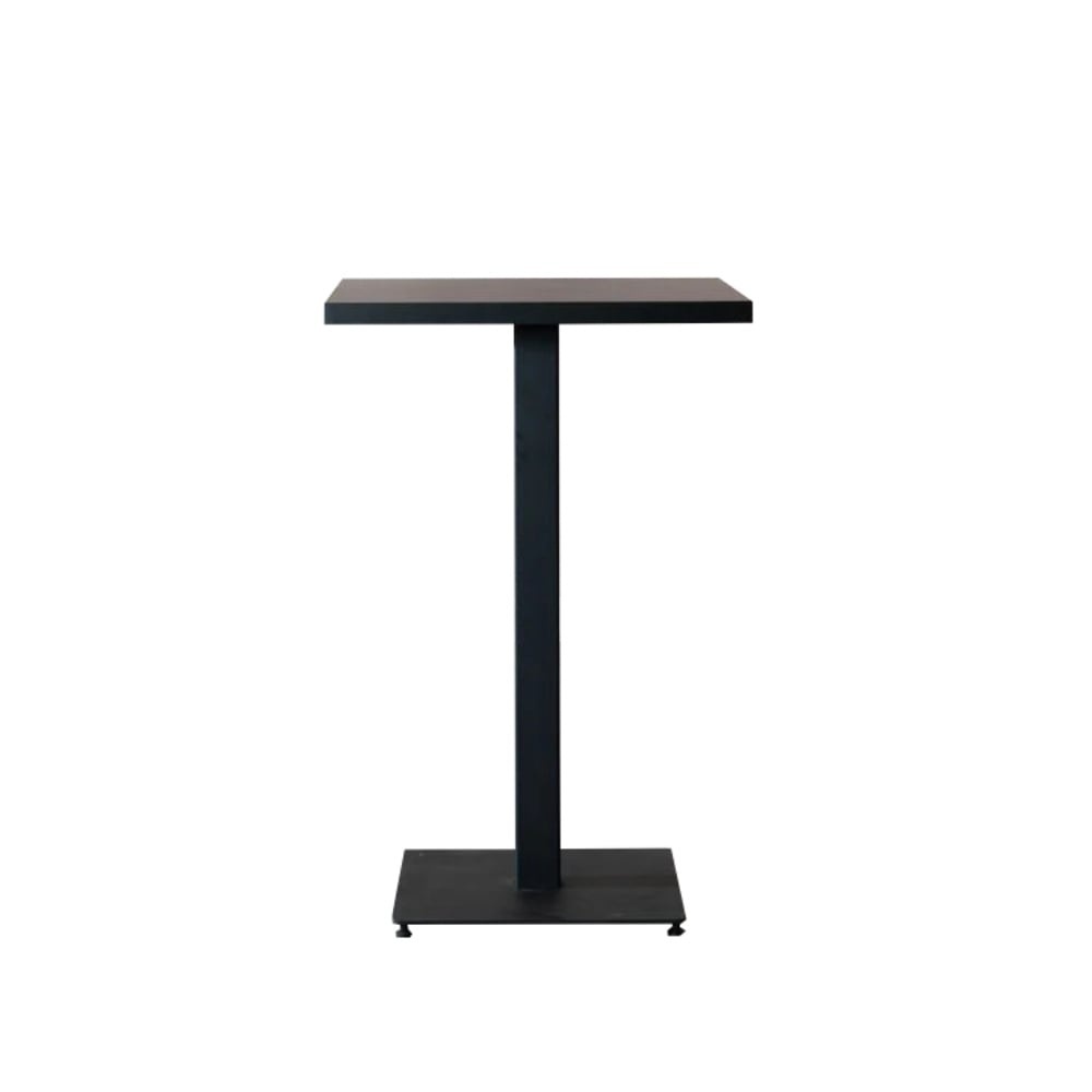 Das Gestell besteht aus schwarzem pulverbeschichtetem Metall. Der Fuß ist mittig angebracht und ist auf diese Weise kaum im Weg. Das Tischgestell ist etwas feiner, auf diese Weise erhält der Bartisch eine luxuriöse Ausstrahlung.