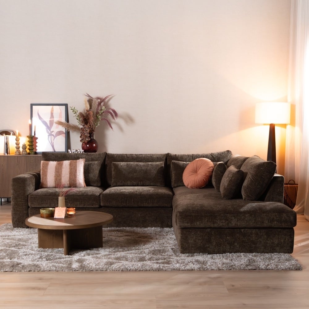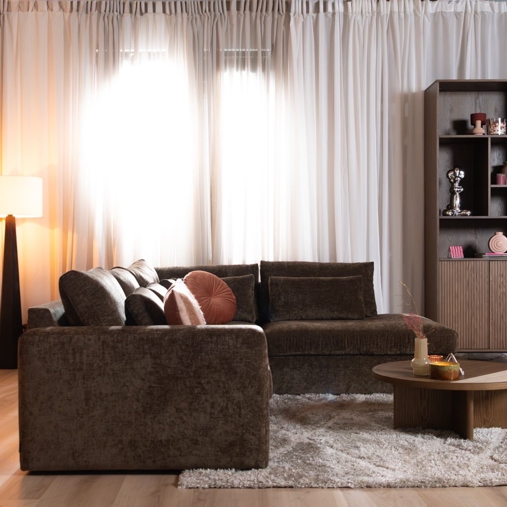 Das Ecksofa Kyle ist mit Eddy Chenille bezogen, einem hochwertigen Stoff aus 100 % Polyester, wasserabweisend und nach REACH- sowie OEKO-TEX-Standards zertifiziert. Chenille zeichnet sich durch eine volle, weiche Struktur aus und bietet besonderen Sitzkomfort. Der Stoff hat einen Martindale-Wert von 60.000, was bedeutet, dass das Sofa extrem langlebig und für intensive (tägliche) Nutzung geeignet ist. Das Sofa ist mit einer wasserabweisenden Oberflächenbeschichtung versehen, sodass Flüssigkeiten nicht sofort eindringen und leicht entfernt werden können.