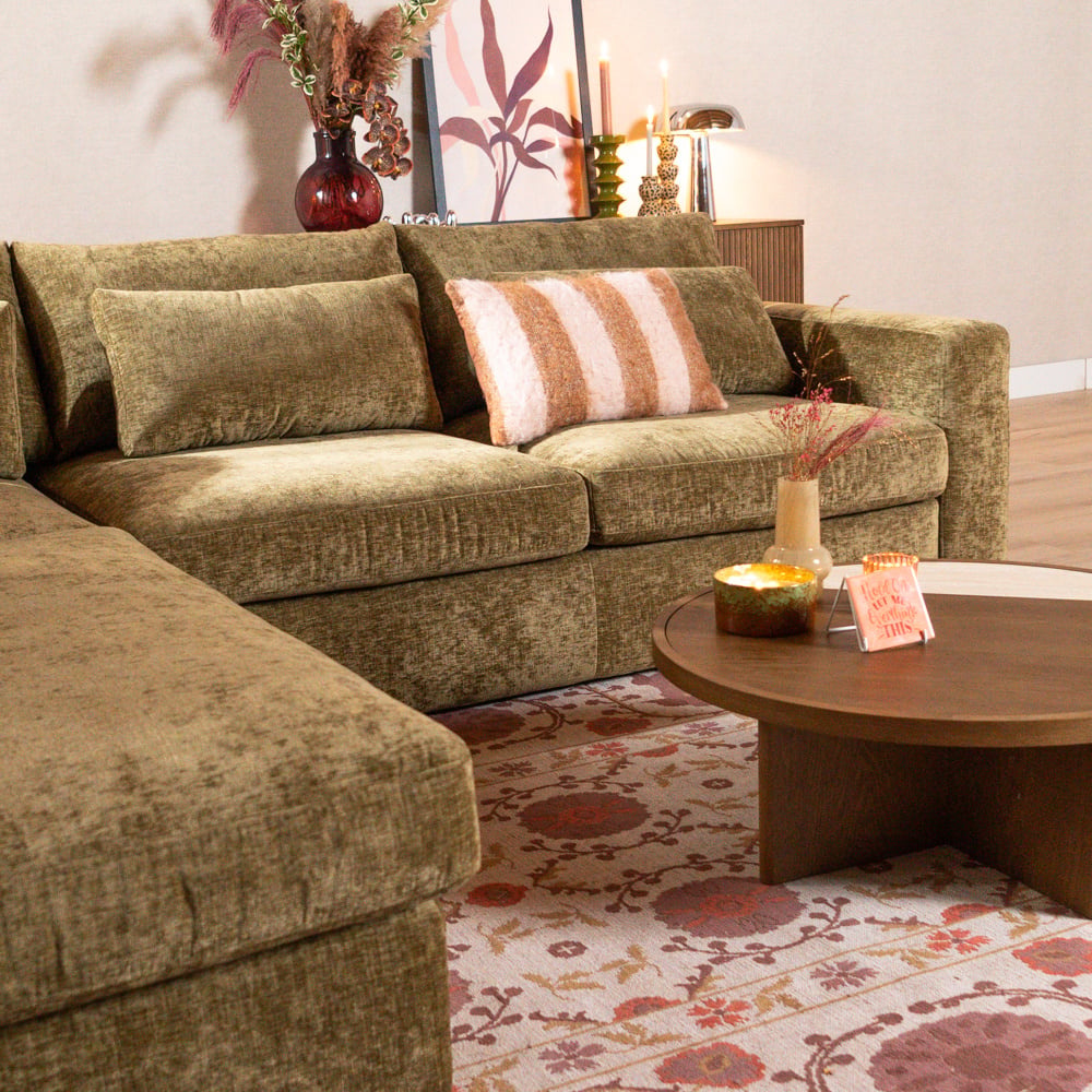 Das Ecksofa Kyle ist mit Eddy Chenille bezogen, einem hochwertigen Stoff aus 100 % Polyester, wasserabweisend und nach REACH- sowie OEKO-TEX-Standards zertifiziert. Chenille zeichnet sich durch eine volle, weiche Struktur aus und bietet besonderen Sitzkomfort. Der Stoff hat einen Martindale-Wert von 60.000, was bedeutet, dass das Sofa extrem langlebig und für intensive (tägliche) Nutzung geeignet ist. Das Sofa ist mit einer wasserabweisenden Oberflächenbeschichtung versehen, sodass Flüssigkeiten nicht sofort eindringen und leicht entfernt werden können.