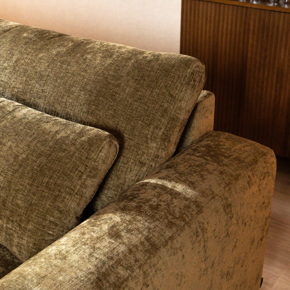 Hinweis: Durch die Chenille-Struktur kann bei bestimmtem Lichteinfall Shading auftreten, was für natürliche Farbvariationen sorgt. Der Rahmen ist robust mit Nosag-Federn, Holzplatten sowie Buchen- und Kiefernholz ausgeführt, wodurch das Sofa eine lange Lebensdauer und eine stabile Basis erhält.