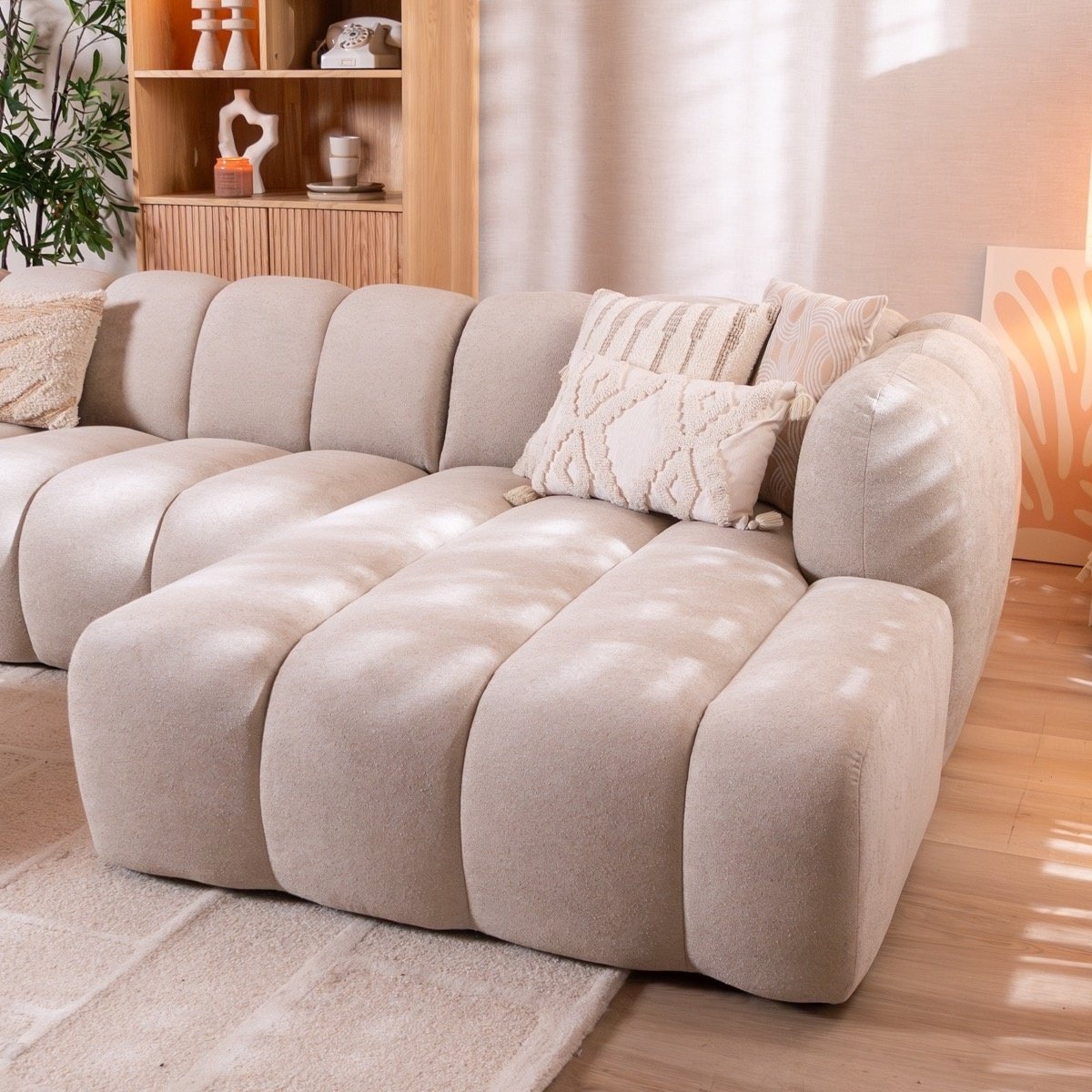 Ecksofa Luca Chenille beige rechts
