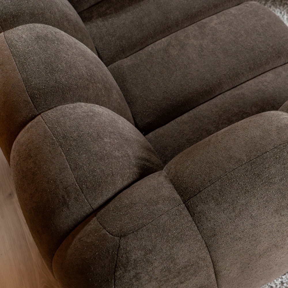 Verarbeitet wird exklusiv Chenille im Stoff Melody (100 % Polyester) mit einer angenehm weichen Haptik, kombiniert mit einer schmutz- und wasserabweisenden Oberfläche, die den Pflegeaufwand im Alltag minimiert. Die strukturierte Optik entsteht durch eine dezente Pilling-Bildung, die das authentische Gesamtbild unterstreicht und keinen Pflegebedarf nach sich zieht. Auch bei hoher Beanspruchung bleibt der Bezug dank einer Martindale-Zahl von 100.000 lange ansehnlich. Die Füllung mit hochwertigem HR-Schaum, kombiniert mit Nosagfedern und einem stabilen Unterbau, sorgt für optimalen Sitzkomfort und Langlebigkeit. Regelmäßiges Absaugen und punktuelles Reinigen genügen meist zur Werterhaltung.