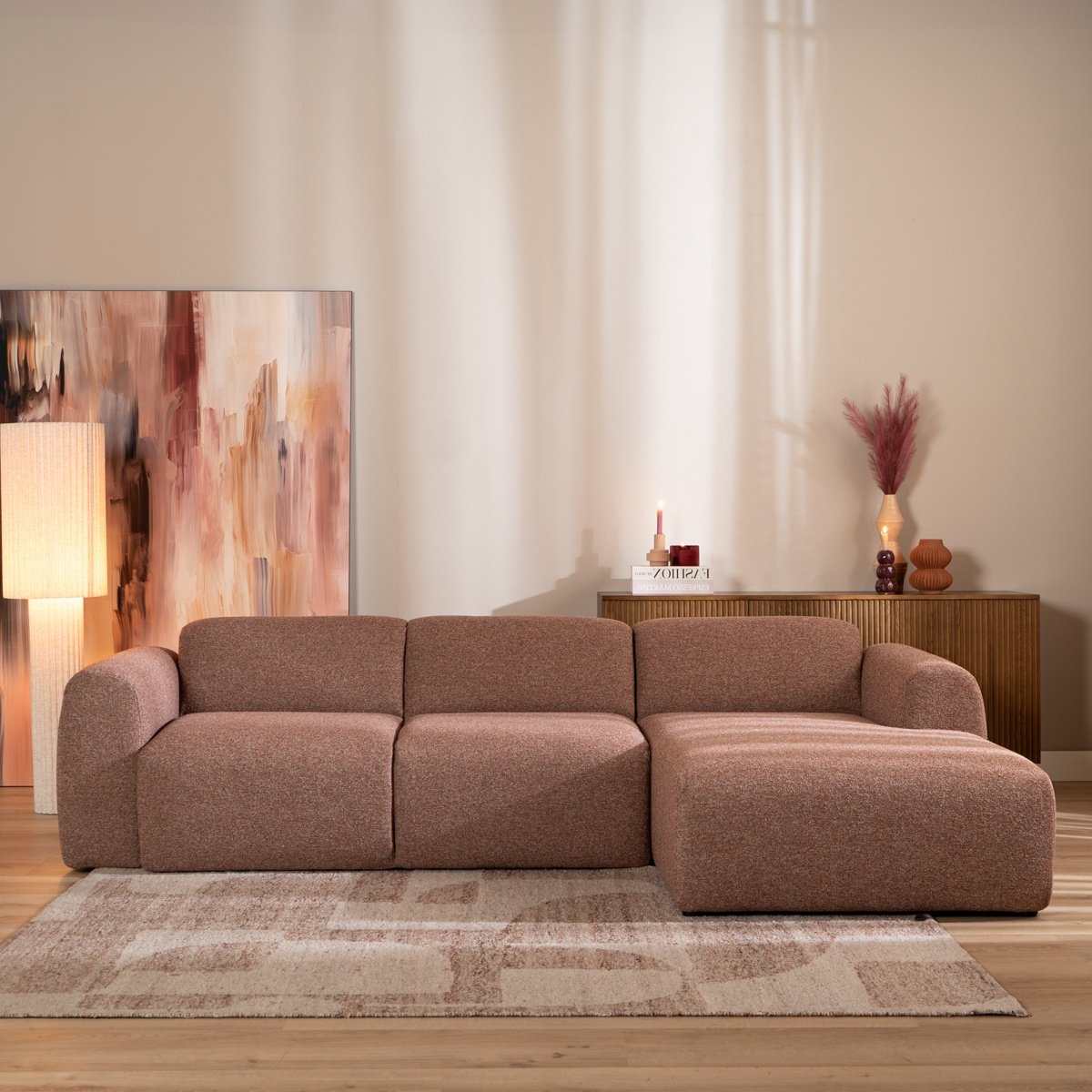 Das Maine ist mit einem Stoff aus 100 % Polyester bezogen. Polyester ist ein äußerst widerstandsfähiges Material mit einer Martindale-Score von 38.000, was den Stoff abriebfest macht. Der Bouclé Stoff fühlt sich angenehm weich an und steigert den Komfort zusätzlich.
