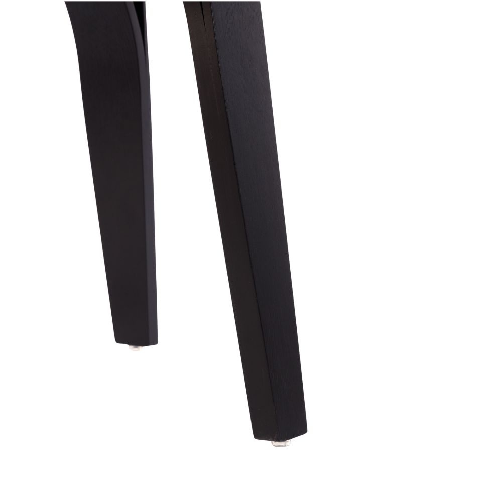 Die Tischplatte ist aus MDF mit einer Deckschicht aus Schwarz-Furnier gefertigt, veredelt in einem mattschwarzen Stil. Dieses Material kombiniert die kraftvolle, klare Optik, die für den Industrial-Stil charakteristisch ist, mit Stabilität: Es verzieht sich nicht und behält seine klare Form. Der tiefe, dunkle Farbton des Furniers passt perfekt zu einem Industrial oder Grafischen Interieur. Das Furnier ist einfach mit einem leicht feuchten Tuch zu reinigen, was die Pflege unkompliziert macht.