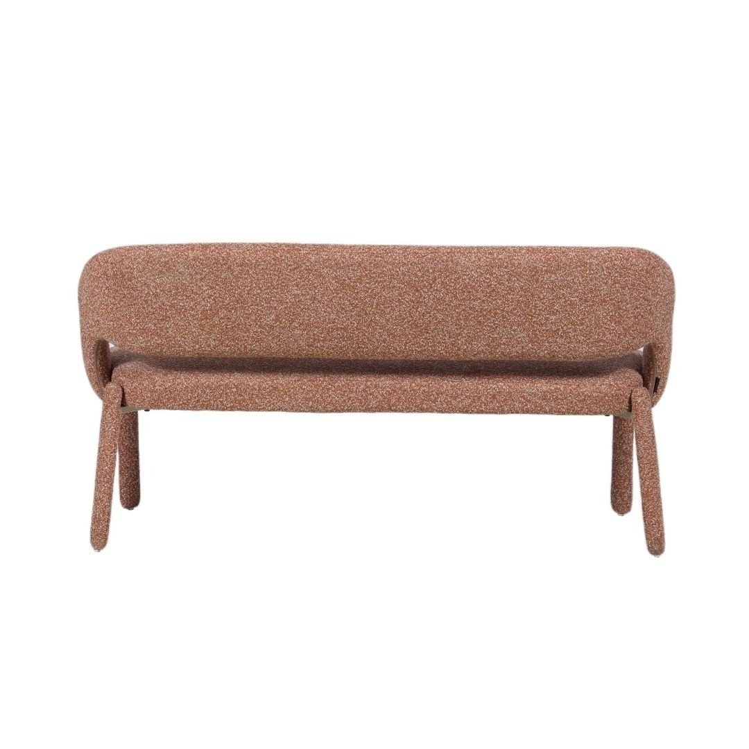Der hochwertige Bouclé-Stoff mit melierten Garnen sorgt für eine moderne Optik und angenehme Haptik. Vollständig bezogene Beine verleihen der Bank eine besonders luxuriöse Ausstrahlung und das stabile Gestell garantiert langfristige Nutzung und Stabilität.
