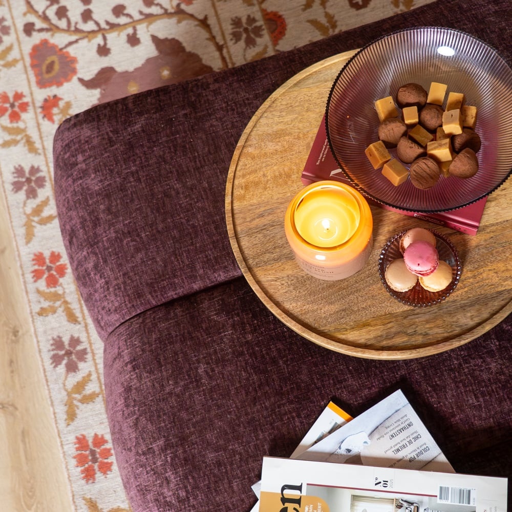 Der Hocker ist mit dem Chenille-Stoff Eddy, gefertigt aus 100 % Polyester, bezogen. Dieser Stoff ist bekannt für seine weiche Haptik und luxuriöse Optik. Mit einer Martindale-Bewertung von 60.000 ist Eddy äußerst strapazierfähig und ideal für intensive Nutzung geeignet. Der Stoff hat zudem einen subtilen Glanz und erinnert ein wenig an Samt. Der Hocker ist nach derselben hochwertigen Konstruktion wie die Luca-Sofas gefertigt und bietet eine stabile und komfortable Nutzung. Die bis zum Boden gepolsterte Ausführung sorgt für eine ruhige und hochwertige Optik innerhalb des Gesamtkonzepts.