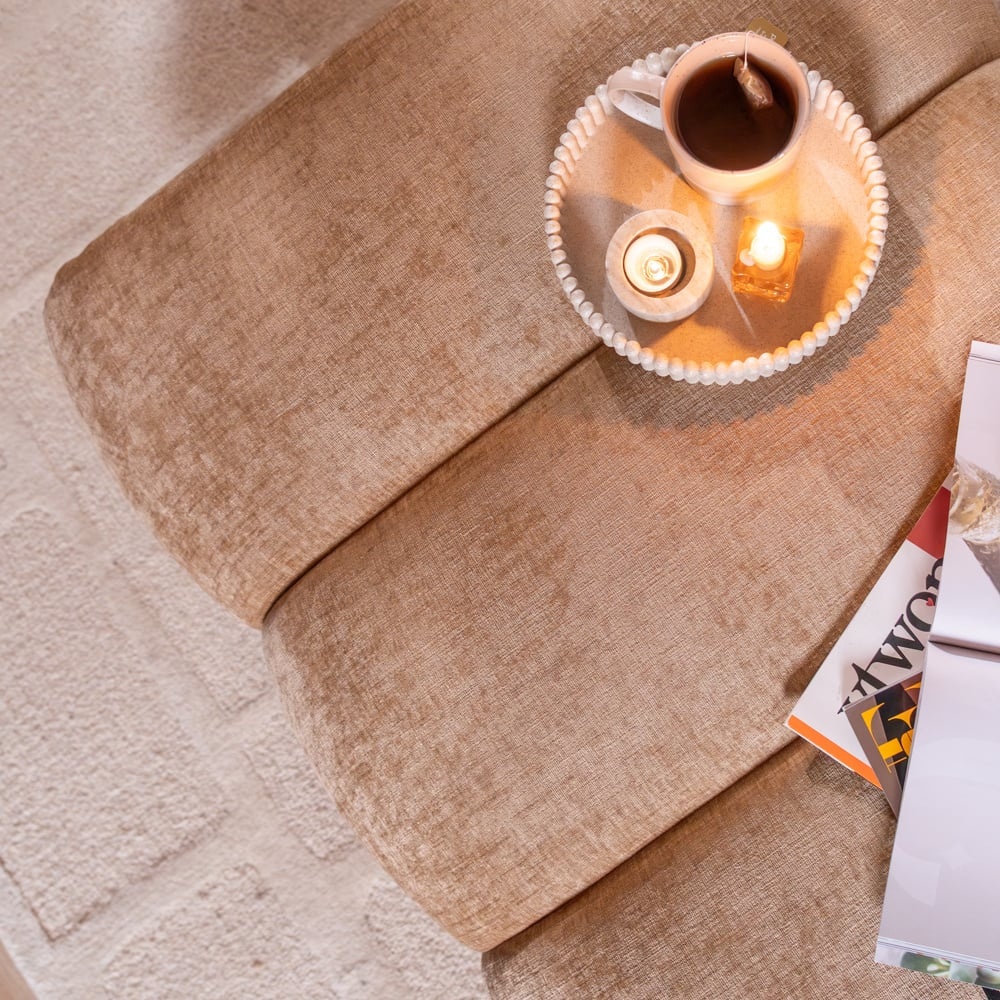 Der Hocker ist mit dem Chenille-Stoff Eddy, gefertigt aus 100 % Polyester, bezogen. Dieser Stoff ist bekannt für seine weiche Haptik und luxuriöse Optik. Mit einer Martindale-Bewertung von 60.000 ist Eddy äußerst strapazierfähig und ideal für intensive Nutzung geeignet. Der Stoff hat zudem einen subtilen Glanz und erinnert ein wenig an Samt. Der Hocker ist nach derselben hochwertigen Konstruktion wie die Luca-Sofas gefertigt und bietet eine stabile und komfortable Nutzung. Die bis zum Boden gepolsterte Ausführung sorgt für eine ruhige und hochwertige Optik innerhalb des Gesamtkonzepts.