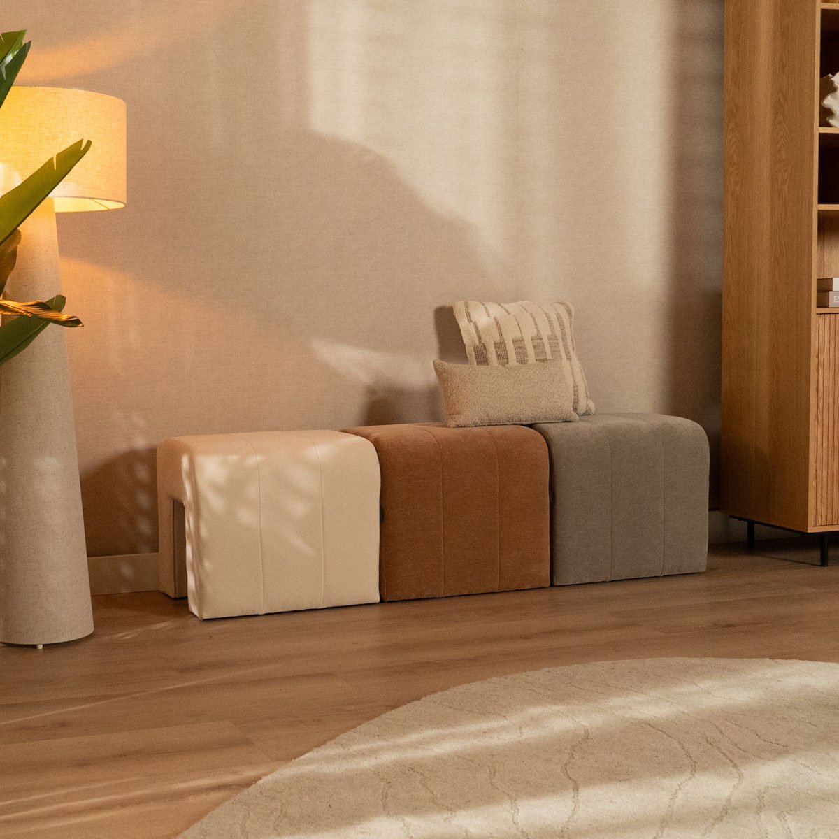 Der modulare Hocker Seth eignet sich ideal für den Einsatz im Objektbereich – ob als Teil einer modernen Esszimmerbank, in Wartezonen oder im Hospitality-Bereich. Die einzelnen Module lassen sich flexibel anordnen: einzeln, in einer geraden Sitzreihe oder als Ecklösung. So lässt sich jede Raumsituation funktional und individuell gestalten.