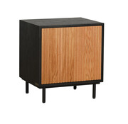 Der Nachttisch Shelly ist aus hochwertigem Rubberwood mit Eichenholz, was dem Möbelstück einen einzigartigen Look verleiht. Hinter der integrierten Soft-Close Tür verbirgt sich viel Stauraum, um beispielsweise Zeitschriften oder Fernbedienungen zu verstecken, sodass das Gästezimmer aufgeräumt ist. Die Schranktür hat ein gestreiftes Design, sodass der Holznachttisch sehr elegant aussieht. Es kann eine schöne Blume oder Kerze aufgestellt werden, um den Nachtschrank zu dekorieren. Somit ist der Nachttisch Shelly flexibel einsetzbar und eignet sich perfekt für Ferienwohnungen oder Hotels.