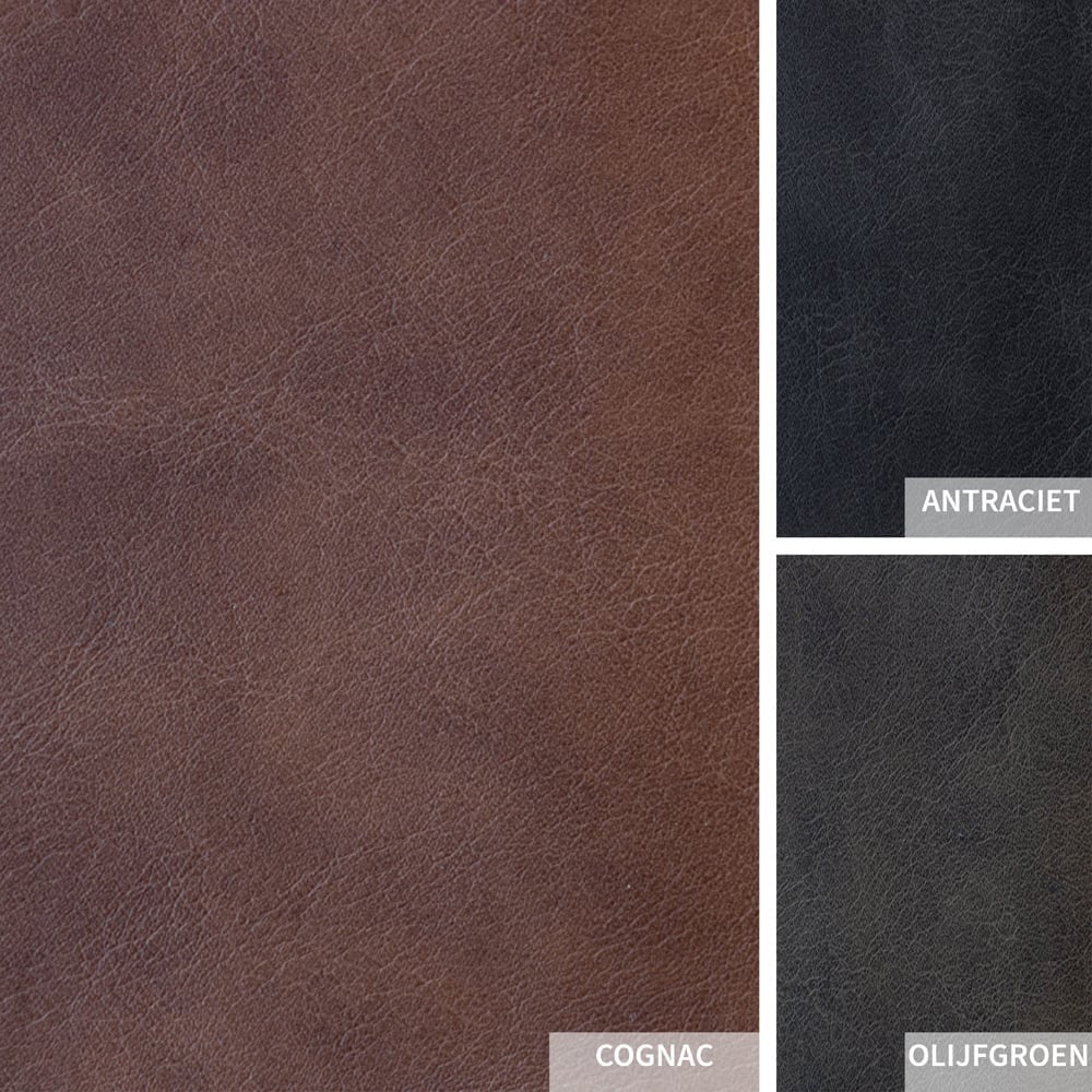 Der industrielle Polsterstuhl Logan ist in den Farben anthrazit, cognac und olivgrün lieferbar. Logan ist auch in einer Variante aus Samtstoff und als Barhocker erhältlich.