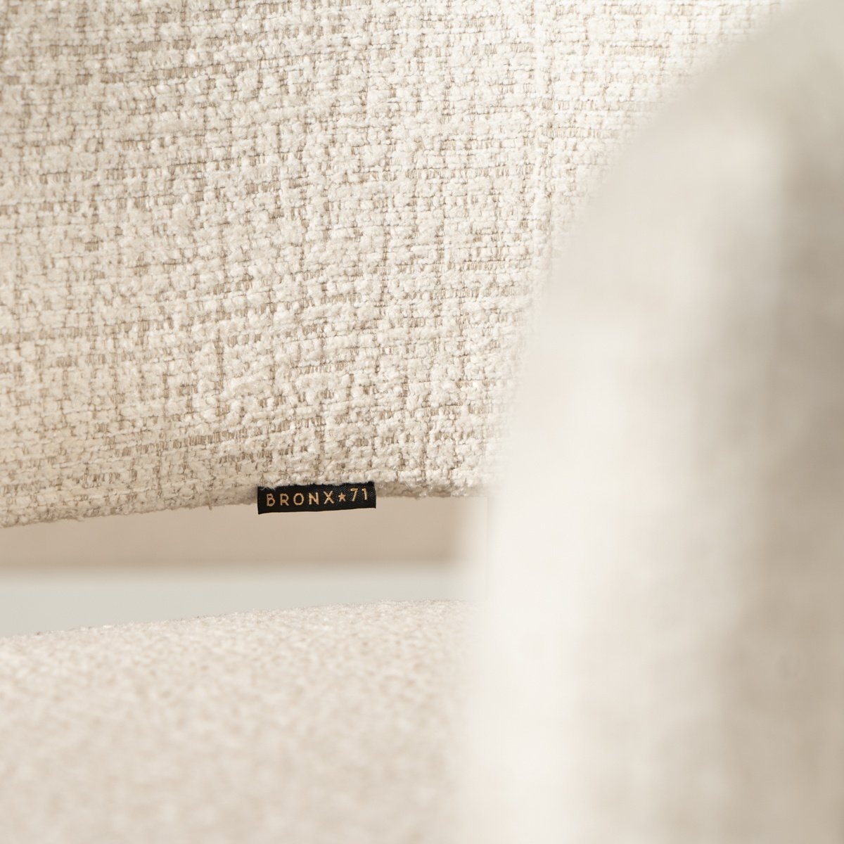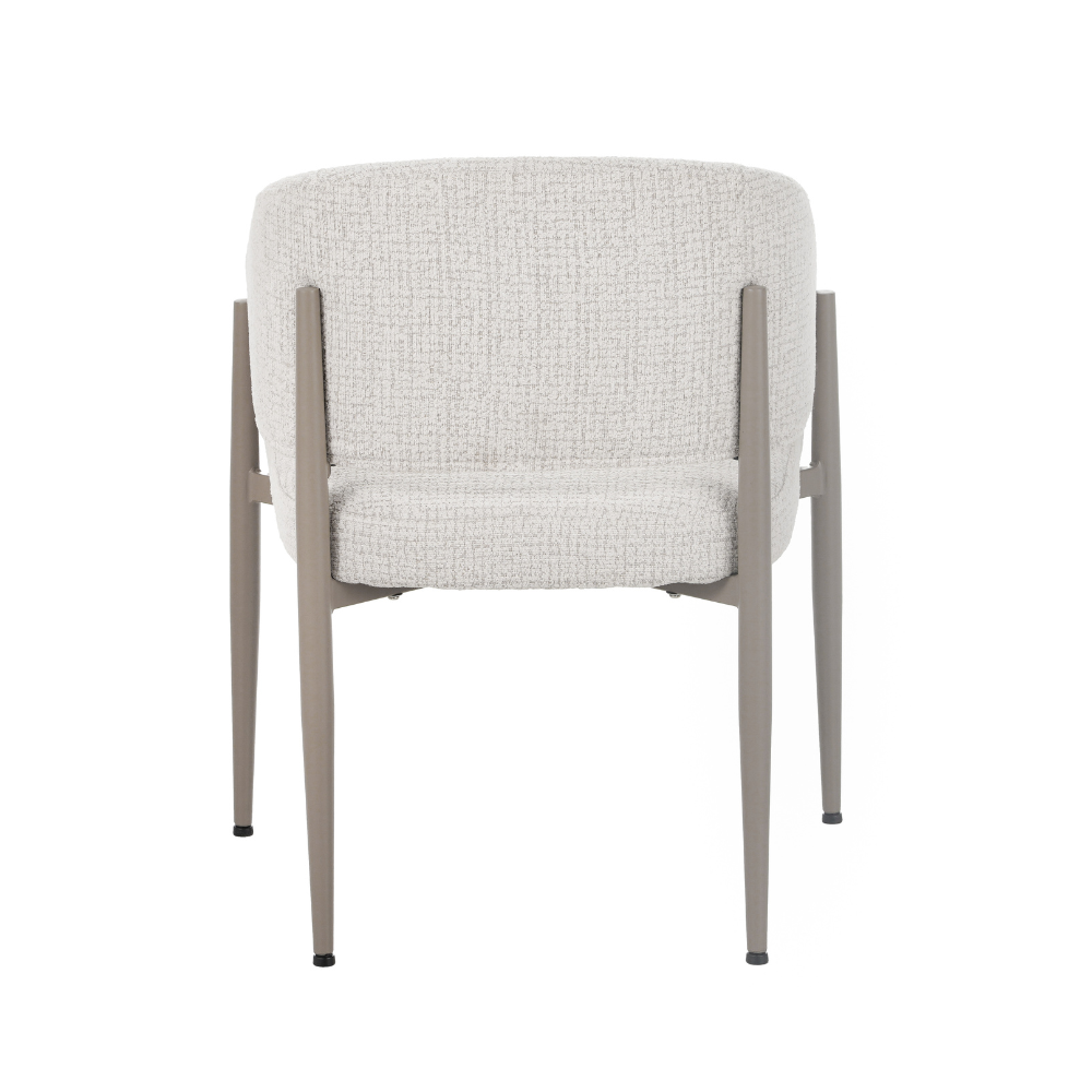 Stuhl Armin vereint Komfort und Stil mit einem melierten Bezug und klar gestalteten Armlehnen. Die schlanken, fest angebrachten Armlehnen verleihen dem Stuhl eine markante Ausstrahlung. Das Gestell ist in einem warmen Taupe-Ton gehalten, was dem Stuhl einen Ton-in-Ton-Look verleiht.