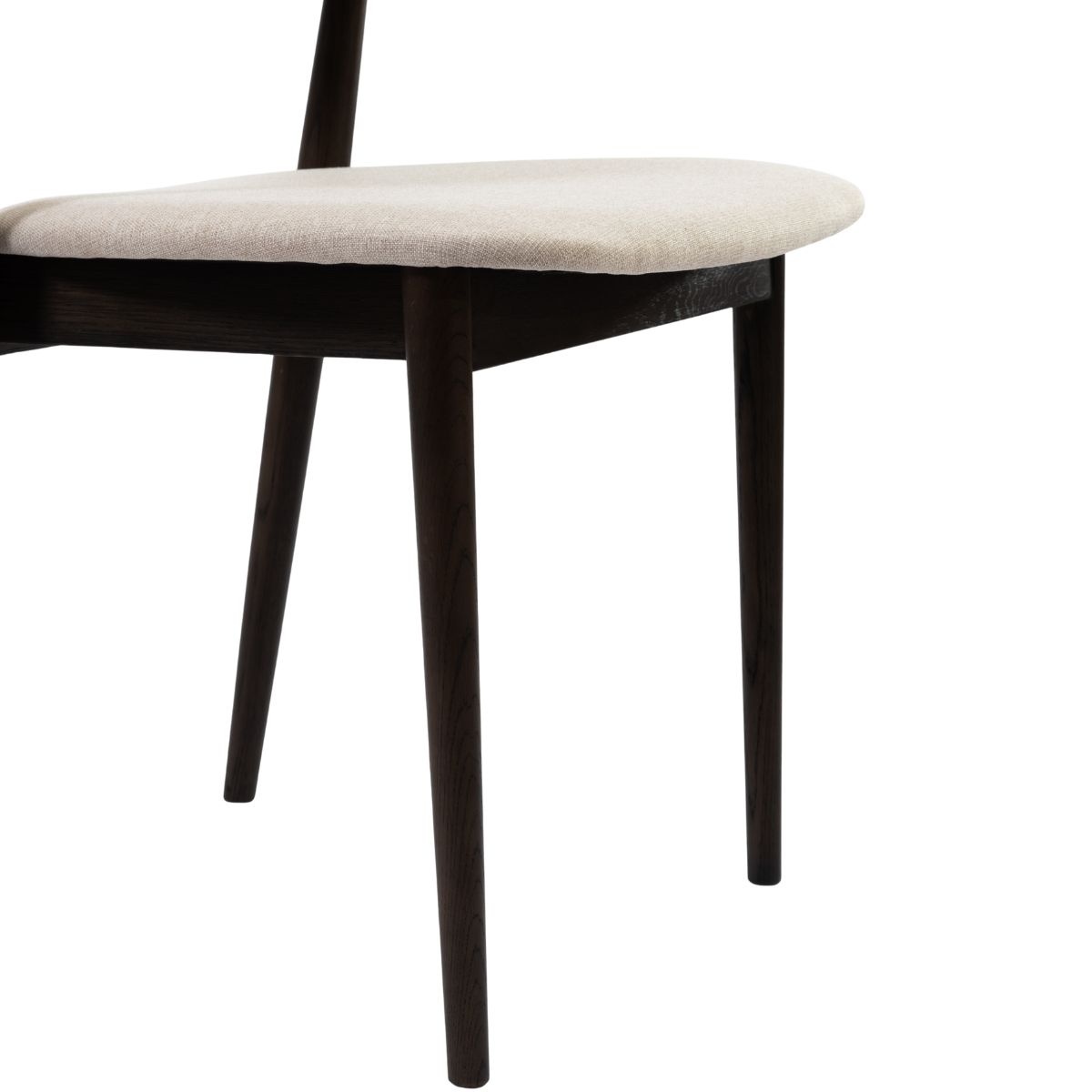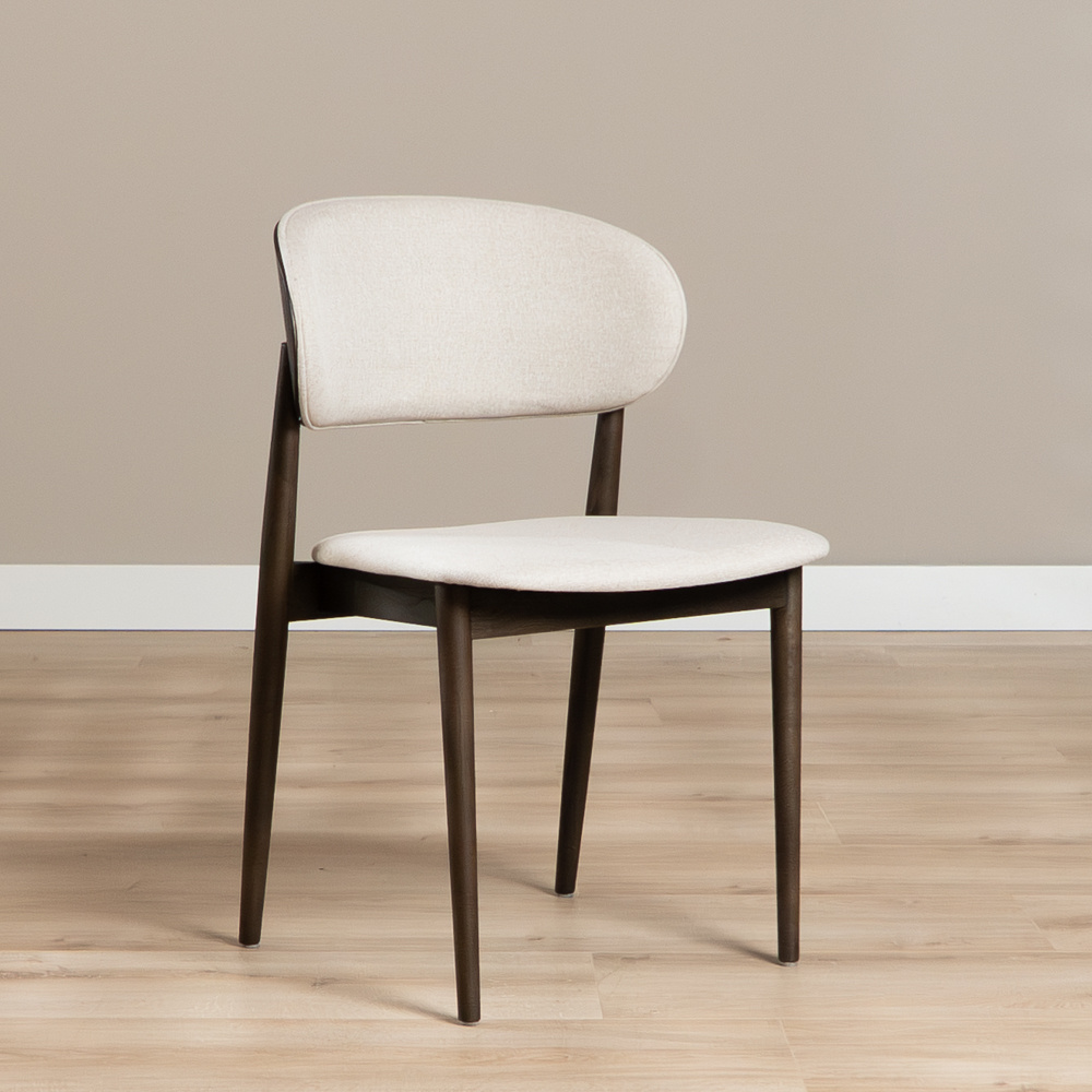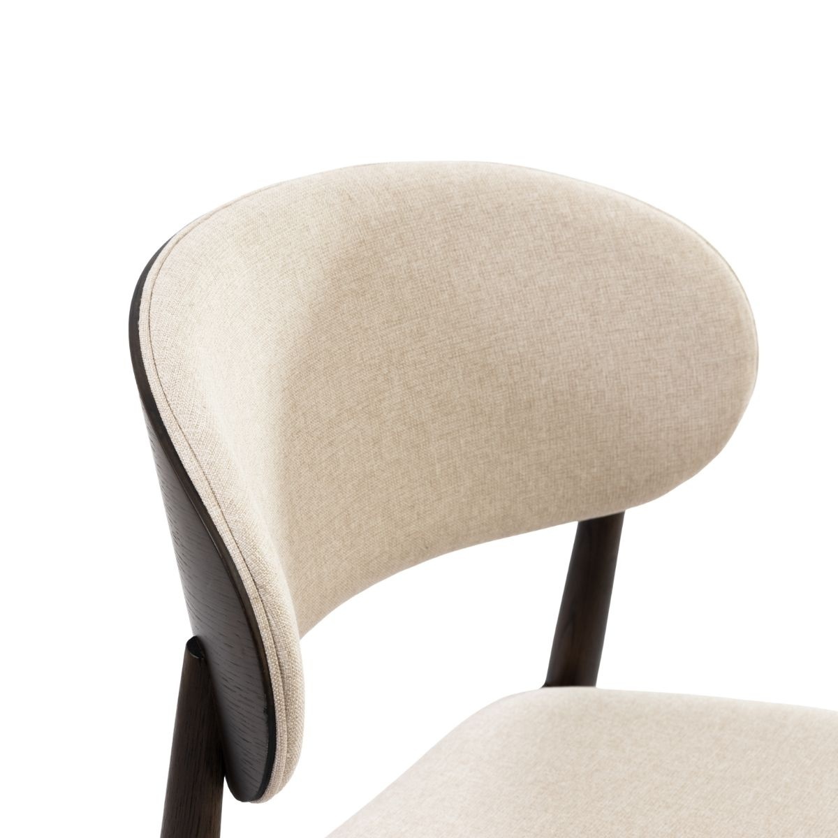 Lernen Sie den Stuhl Bohdi kennen, eine raffinierte Mischung aus modernem Design, sanften Linien und praktischen Details. Die Rückenlehne ist auf der Rückseite aus Holz gefertigt und auf der Vorderseite mit dem Leinenstoff gepolstert.