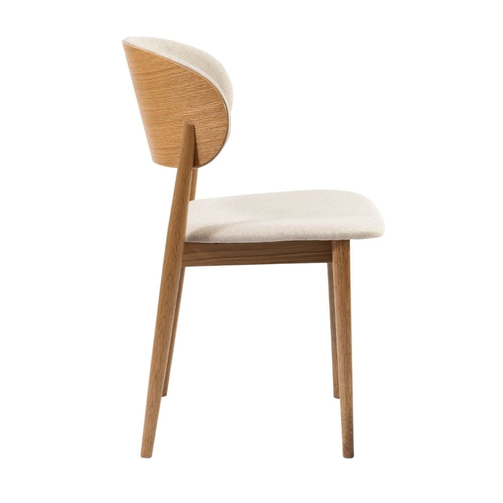 Der Stuhl verfügt über eine Schicht Eichenfurnier. Diese lässt sich leicht mit einem leicht feuchten Tuch reinigen. Zudem wird empfohlen, regelmäßig den Foam Cleaner zu verwenden, um das Produkt optimal zu erhalten. Es wird nicht empfohlen, Möbelstücke mit Eichenfurnier direktem Sonnenlicht auszusetzen, da dies die Wahrscheinlichkeit von Farbveränderungen und dem Verblassen der Furnierschicht erhöht. Das Gestell besteht aus 100 % massivem Eichenholz. Bitte beachten Sie: Der helle Stoff ist empfindlicher gegenüber Flecken, lässt sich jedoch gut pflegen und reinigen mit unserem Textil Care & Clean Kit.