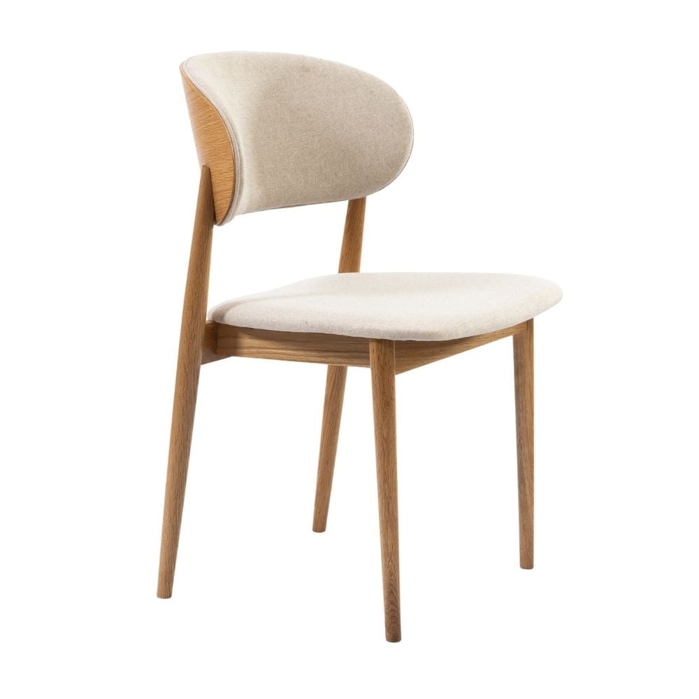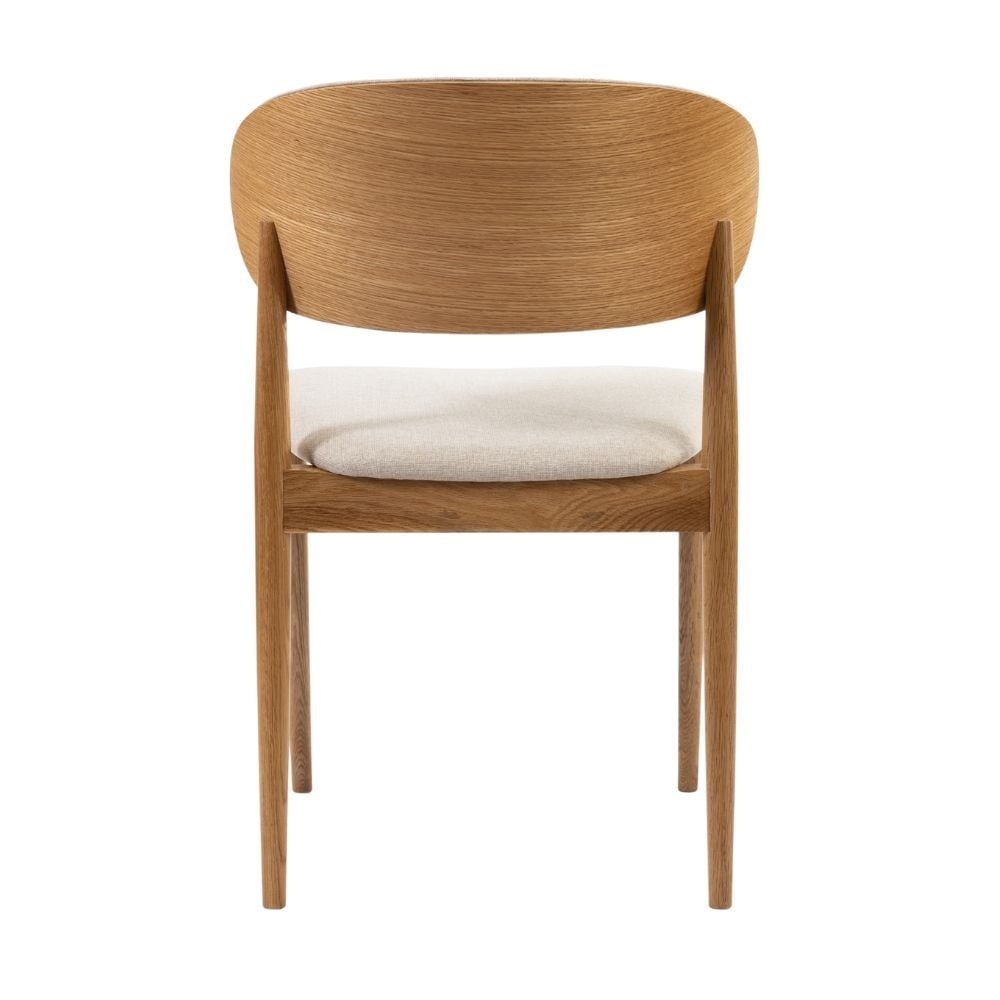 Lernen Sie den Stuhl Bohdi kennen, eine raffinierte Mischung aus modernem Design, sanften Linien und praktischen Details. Die Rückenlehne ist auf der Rückseite aus Holz gefertigt und auf der Vorderseite mit dem Leinenstoff gepolstert.