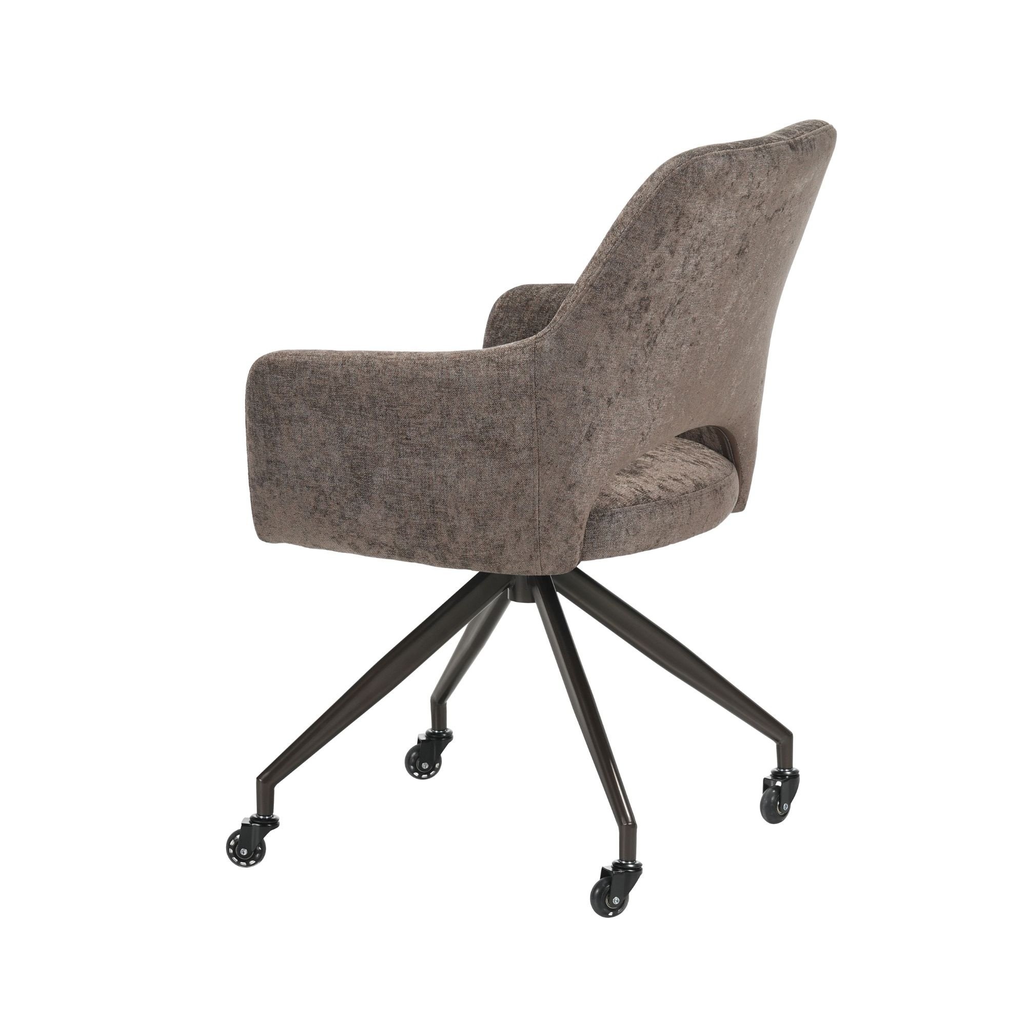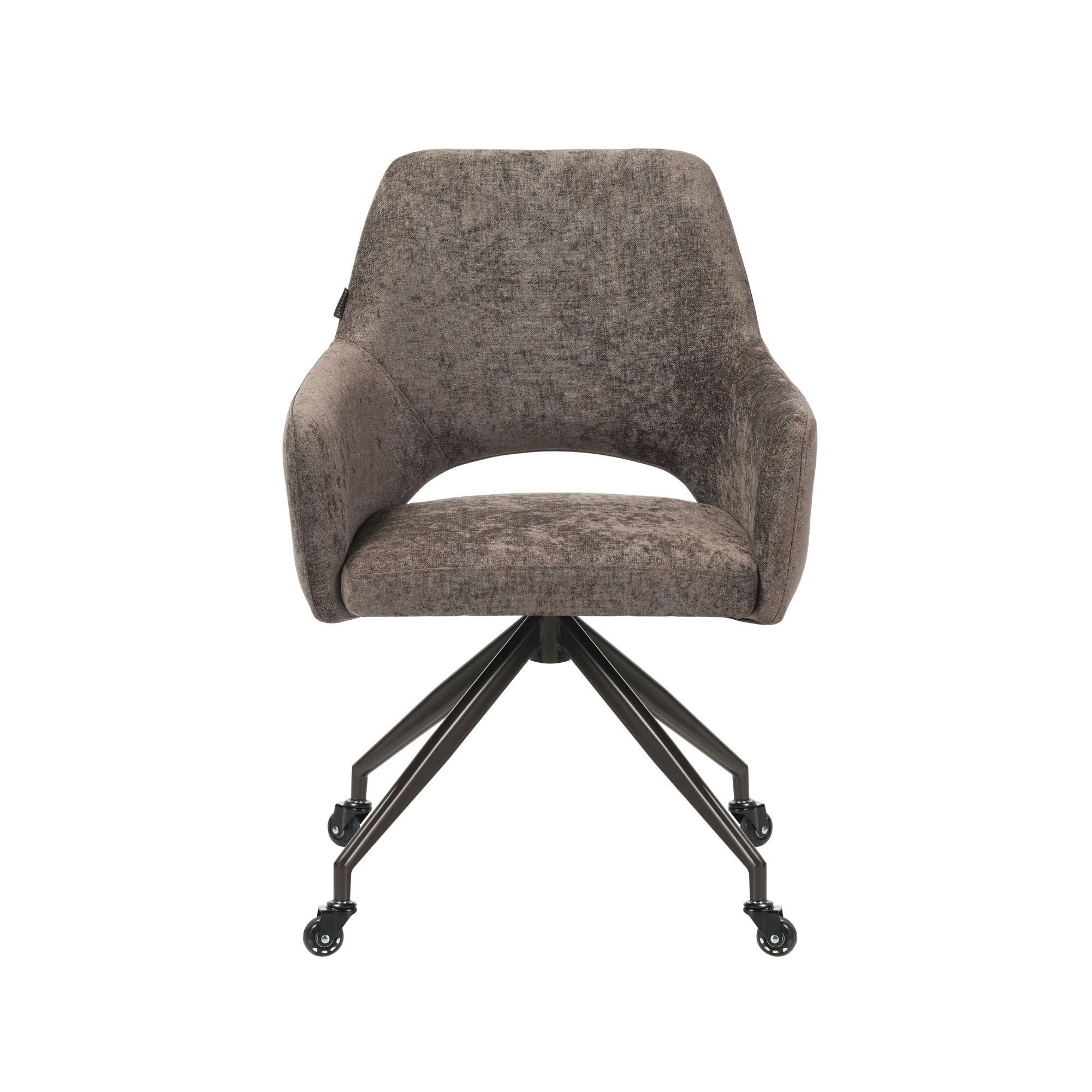 Der wasserabweisende Samtbezug ist robust und praktisch im Alltag, sodass Flecken schnell und einfach entfernt werden können. Das stabile braune Stahlgestell sorgt für Stabilität und verleiht dem Stuhl eine luxuriöse, professionelle Ausstrahlung. Durch die Öffnung in der Rückenlehne bleibt weniger Schmutz zurück und der Stuhl lässt sich leichter sauber halten.
