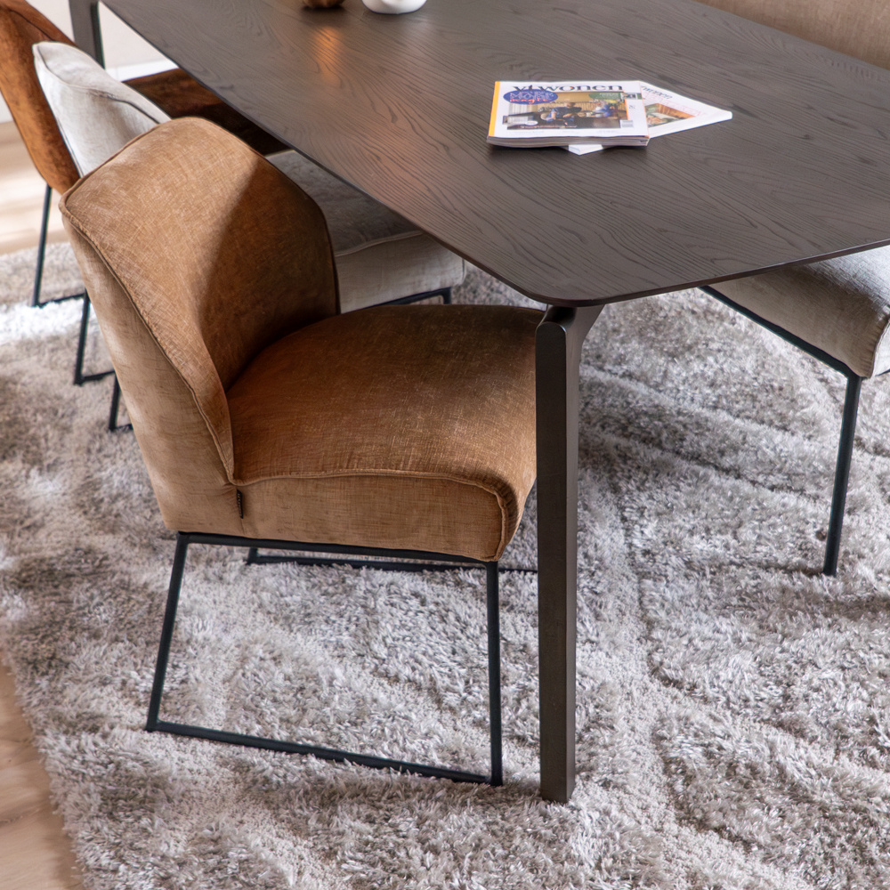 Der Stuhl Momo ist der ideale Stuhl, der nicht nur optisch überzeugt, sondern auch praktisch und komfortabel ist. Der Stuhl Momo aus Chenille in Peach eignet sich perfekt für Räume, in denen Ausstrahlung und Benutzerfreundlichkeit eine wichtige Rolle spielen. Dank seiner einladenden Form und der komfortablen Sitzfläche bietet er ein angenehmes Sitzerlebnis. Das minimalistische Untergestell bringt die luxuriöse Optik des Stuhls in Balance und fügt sich nahtlos in eine moderne Einrichtung ein.