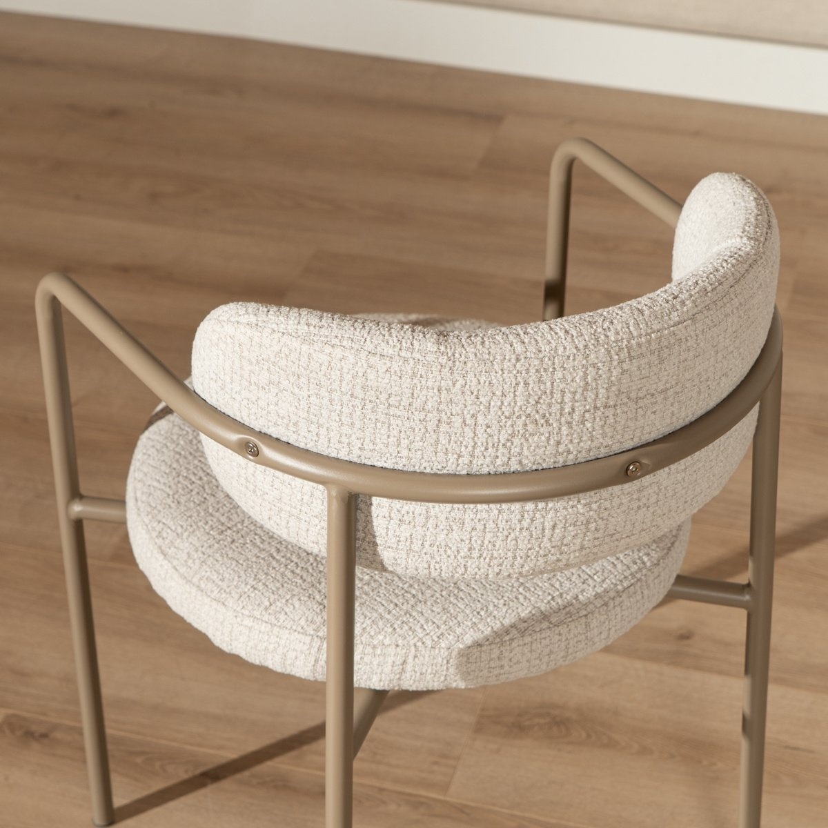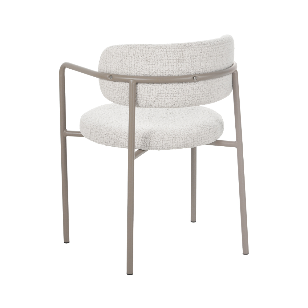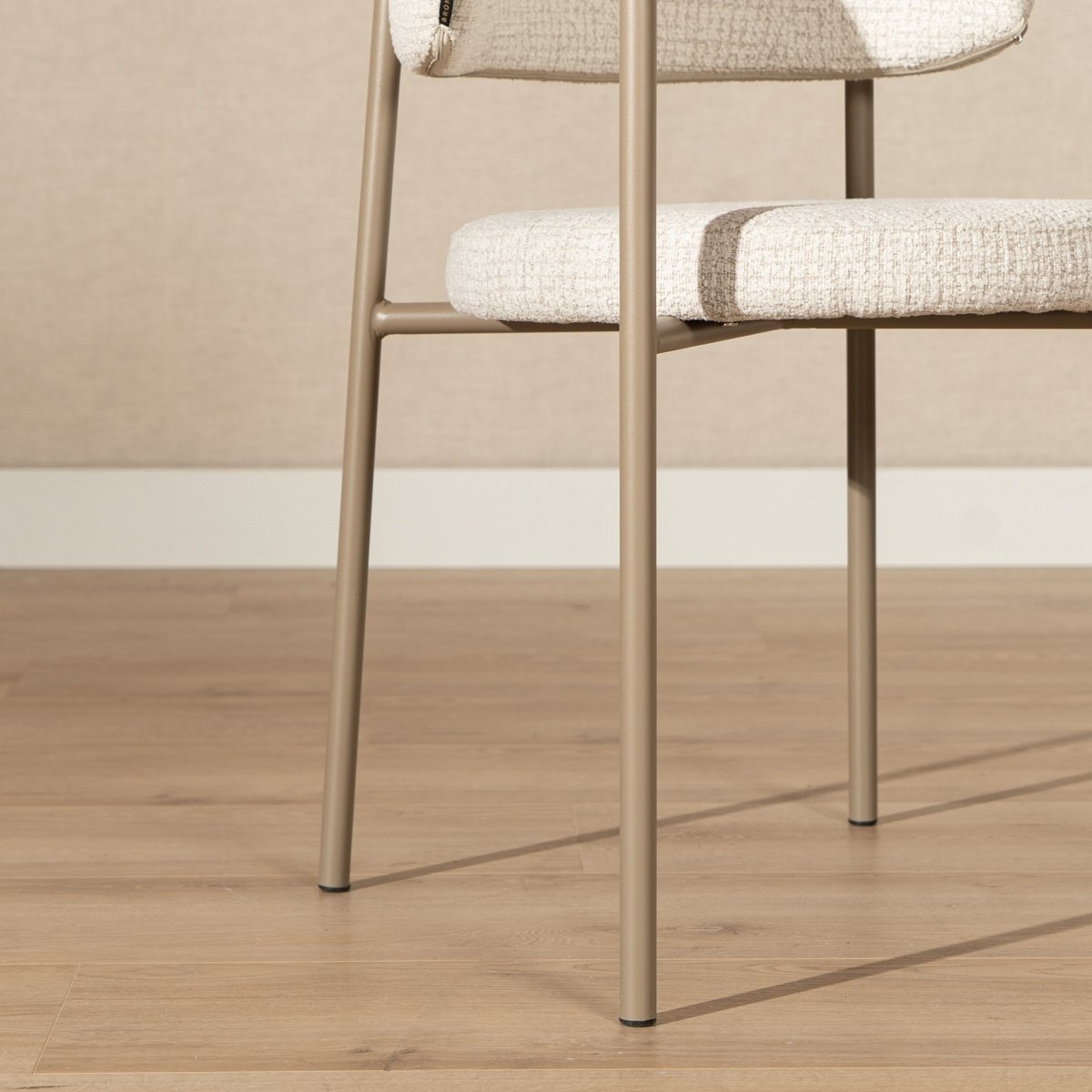 Die Armlehnen und die runde Rückenlehne sorgen bei Stuhl Nicky für hohen Komfort. Unterstützung für Arme und Schultern: Verringert die Muskelbelastung bei längerem Sitzen – z. B. während Meetings, Telefonaten oder Schreibtischarbeiten. Das taupefarbene Gestell in Kombination mit dem melierten Stoff verleiht dem Stuhl eine stilvolle Ausstrahlung.