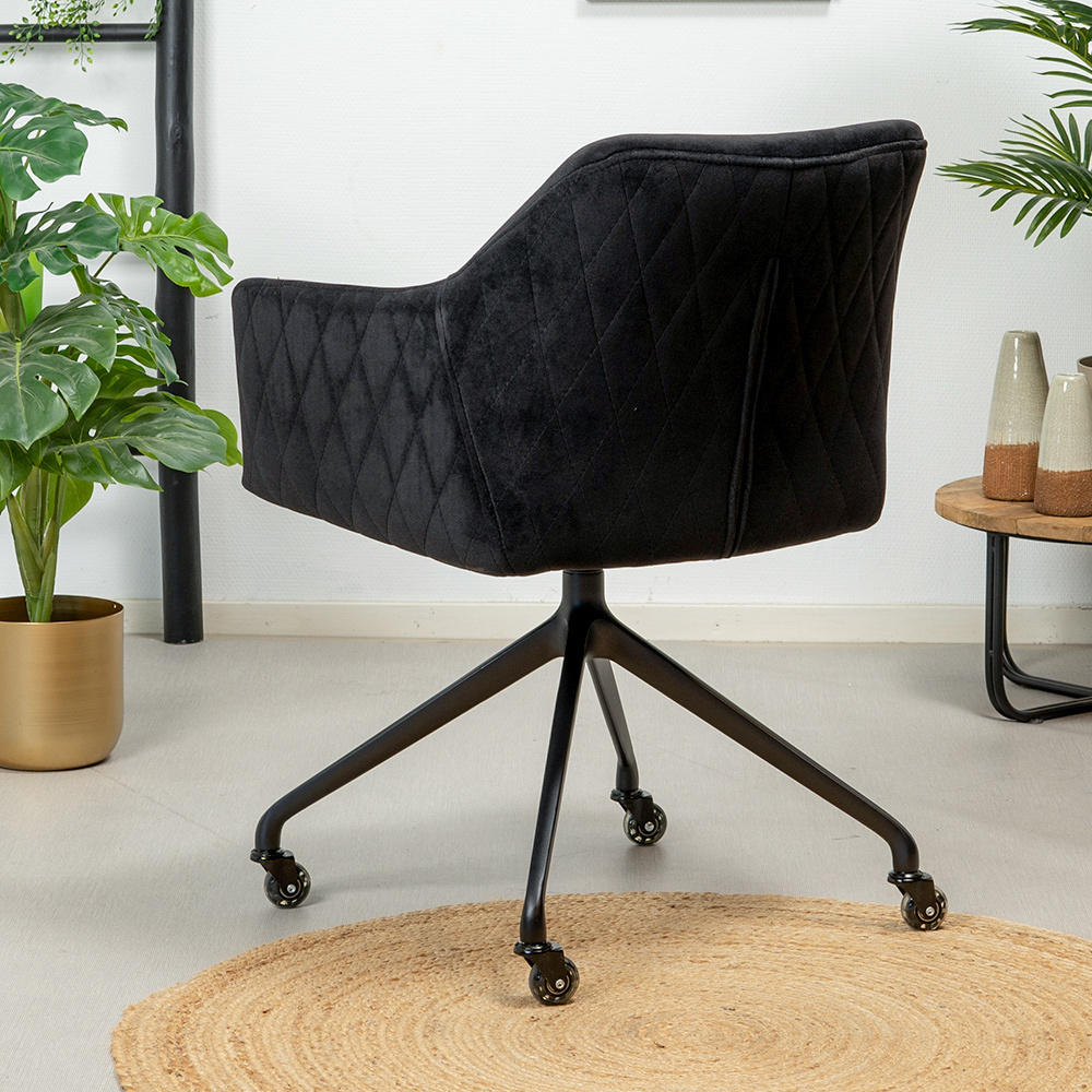 Polsterstuhl Samt Quinn mit Armlehne auf Rollen schwarz